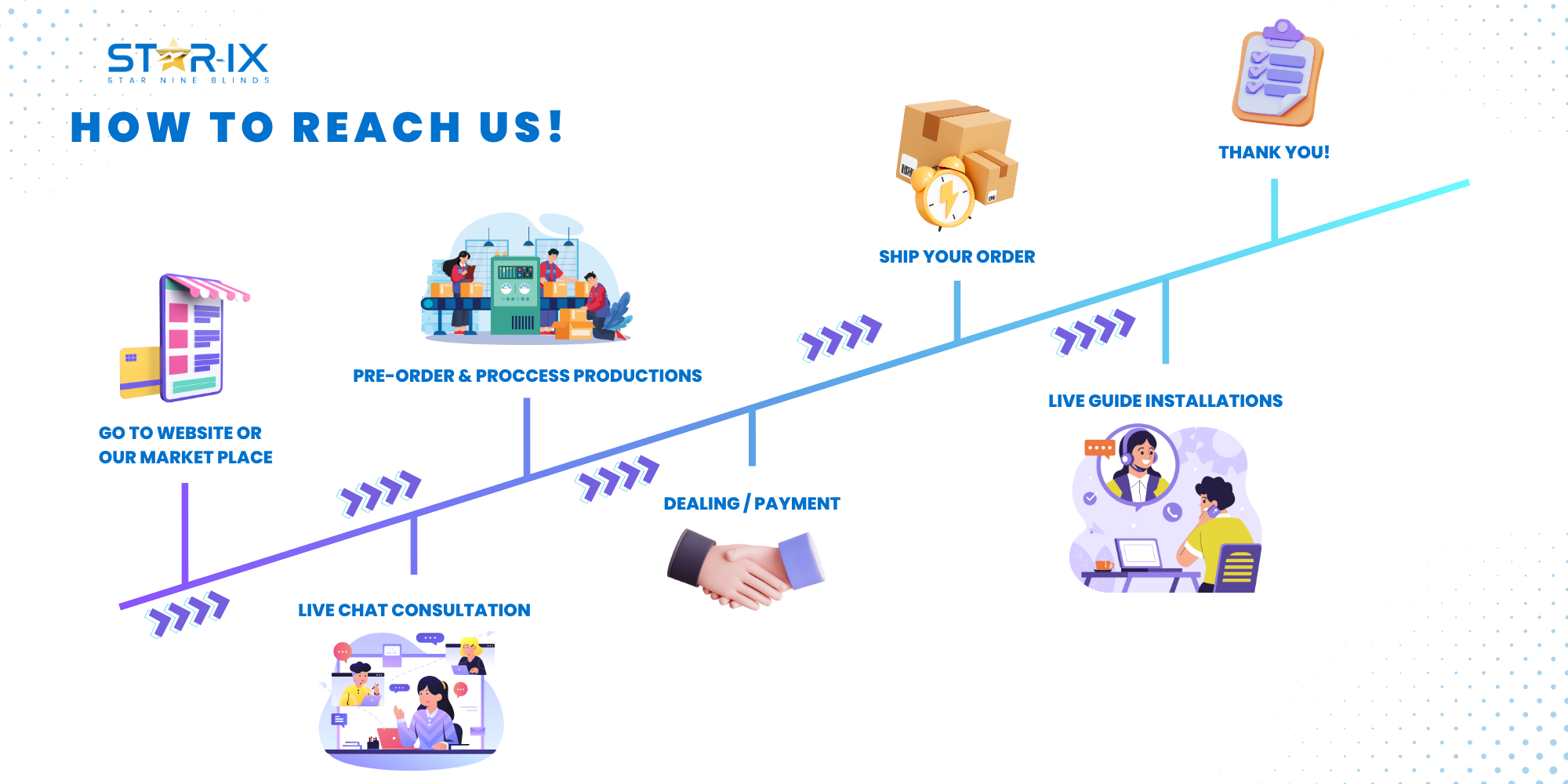 Cara bertransaksi dengan STAR IX BLINDS sangat gampang, anda hanya perlu menekan tombol whatsapp yang ada di pojok kanan bawah, anda akan langsung terhubung dengan CS kami yang siap melayani sesuai dengan kebutuhan anda.